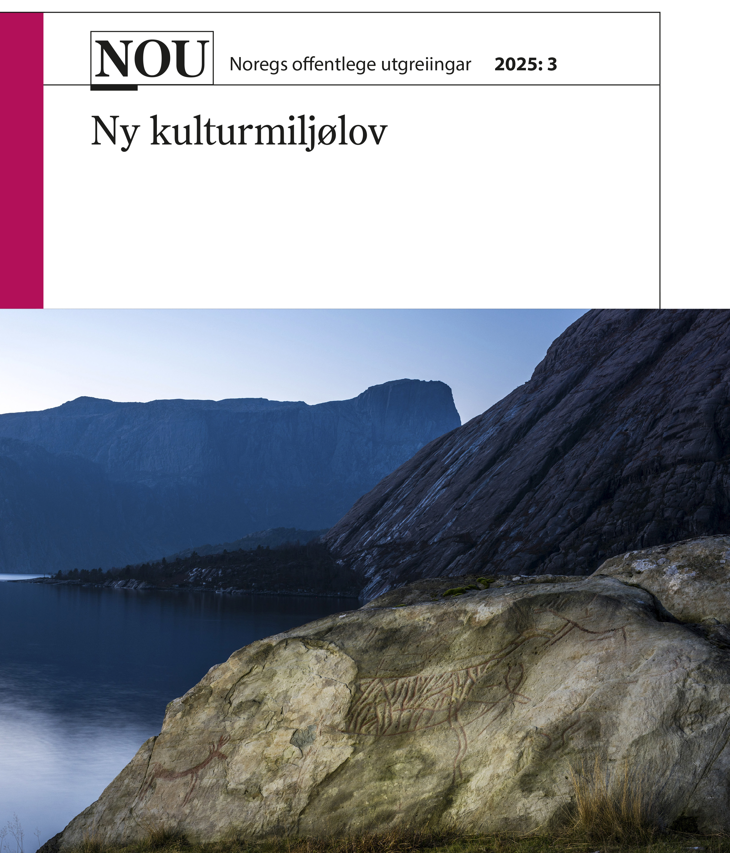 | Tittel: | Ny kulturmiljølov : NOU 2025:3 | | Ansvar: | Kulturmiljølovutvalget - Gunnar O. Hæreid, Kjersti Gram Andersen, Torvald Falch, Jarand Felland, Ola H. Fjeldheim, Caroline Wang Gierløff, Christian Hintze Holm, Ingunn Elise Myklebust, Marianne Olssøn | | Forfatter: | Hæreid, Gunnar O. / Andersen, Kjersti Gram / Anfinset, Nils  | | Materialtype: | Offentlige publikasjoner | | Signatur: | 069 NOU | | Utgitt: | Oslo : Klima- og miljødepartementet, 2025 | | Omfang: | 495 sider - Illustrert | | ISBN/ISSN: | 0333-2306 | | Klassenummer: | 069 | | Serie: | Norges Offentlige Utredninger (NOU) ; 2025:3  | | Norges offentlige utredninger, ISSN 03332306 ; 2025:3 | | Emneord: | 2025:3 / Kulturminnelov / Kulturminneloven / Norges offentlige utredninger / Riksantikvaren | | Note: | Boken ligger også som nedlastbar PDF på høyre side. | | Innhold: | ----------------------------------------------------------------------------------------------------