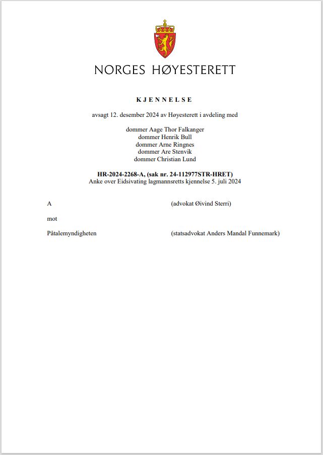 Rettsområde: Straffeprosess Kjerneavsnitt: 50, 59–62 Dommere: Falkanger, Bull, Ringnes, Stenvik, Lund (Sammendraget er utarbeidet i Høyesteretts informasjonsvirksomhet, og er ikke en del av avgjørelsen.)
