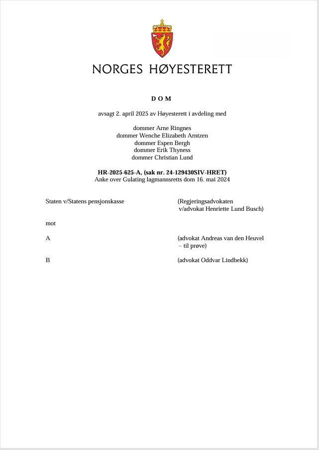Rettsområde: Pensjon. Lov om Statens pensjonskasse § 11. Nøkkelavsnitt: 72-73, 94-101, 106 Dommere: Ringnes, Arntzen, Bergh, Thyness, Lund (Sammendraget er utarbeidet i Høyesteretts informasjonsvirksomhet, og er ikke en del av avgjørelsen.)