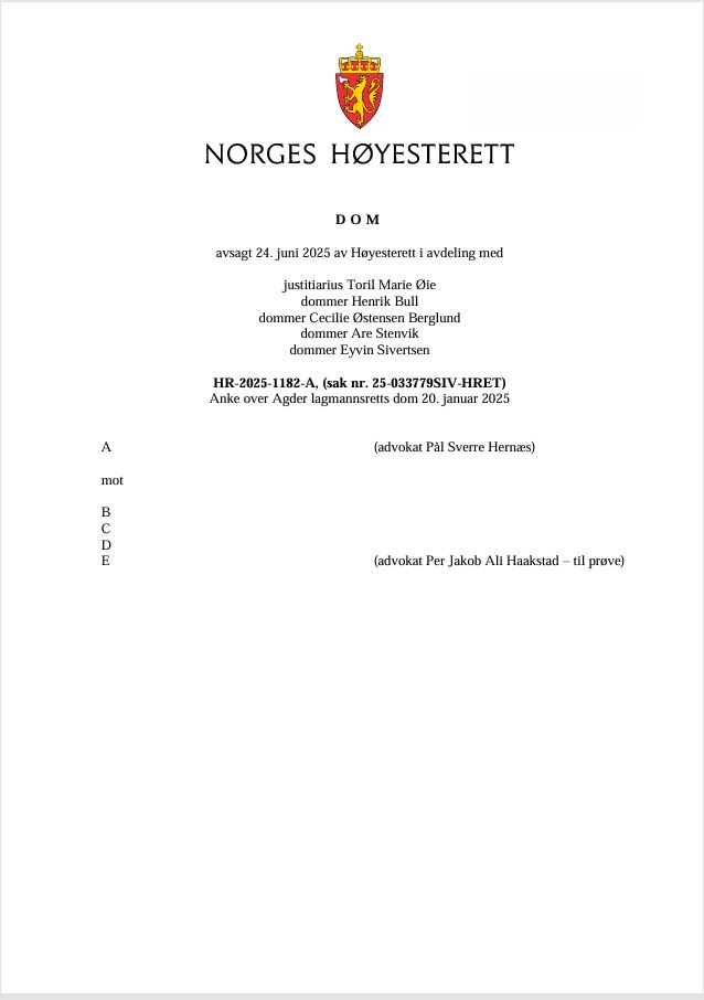 Tittel: | Avkortning i arv på grunn av gaver gitt før 1. januar 2021 skal vurderes etter den gamle arveloven - HR-2025-1182-A, (sak nr. 25-033779SIV-HRET) : 24. juni 2025 avsa Høyesterett dom | Ansvar: | A (advokat Pål Sverre Hernæs) mot B, C, D, E (advokat Per Jakob Ali Haakstad) | Materialtype: | Dom | Signatur: | Høyesterett | Utgitt: | Oslo : Høyesterett, 2025 | Omfang: | 7 sider | Emneord: | Arverett / Avkorting / Gaver / Høyesterettsdom | Stikkord: | Arveloven (1972) § 38 / Arveloven (2019) § 180 / Arveloven (2019) § 75 / HR-2025-1182-A | Note: | Anke over Agder lagmannsretts dom. | Innhold: | En mann hadde fire barn, hvorav tre hadde mottatt betydelige livsgaver før 1. januar 2021, som er datoen for gjeldende arvelovs ikrafttredelse. Det barnet som ikke hadde mottatt noen slik gave, mente at det måtte foretas avkortning i de øvriges arv fordi dette var bestemt eller forutsatt av faren.